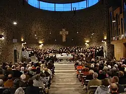 Concerts and services have also been performed by guest ensembles such as the Ukrainian chamber choir OREYA.[17] The choirs of St. Martin travelled to England in 2006 to attend services and evensong in Christ Church, Oxford, Salisbury Cathedral and St Paul's Cathedral, London. They travelled to Leipzig in 2008 to hear the Thomanerchor in Motette and services.[16] In 2009 they sang with other choirs of the diocese in the Limburg Cathedral from the Missa primi toni octo vocum of Stefano Bernardi for double chorus, conducted by Joachim Dreher and Franz Fink.[18] In 2016, they performed at the Cathedral the premiere of the oratorio Laudato si' with the choirs of Liebfrauen, Frankfurt, conducted by the composer Peter Reulein. The performance was repeated at the Frankfurt Cathedral in 2017.[19]