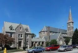 The rectory and diocesan offices are attached to the rear of the cathedral by a colonnade. The original rectory was a Stick style residence. It was replaced in 1927 by the current rectory.