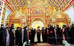 There are two altars on the north and south of the main one. The altar on the northern side is consecrated to Saint Thomas the Apostle and the altar on the southern side is consecrated in the name of Saint George.