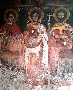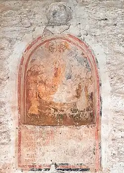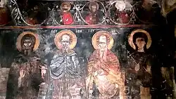 The church was painted in 1672 by Mihal Jerma.[3] The inscription is among the earliest examples of the Albanian language written in the Greek alphabet.[4] The church was burned by the Luftwaffe during World War II. A 500-page leather-bound copy of the Gospels was stolen then and ended up in the Louvre.[5] The bell was donated by the King of Naples in 1695 and inscribed “Dedicated to the Captains of Lukovë” after the seat of the feudal lord of the area.[6]