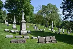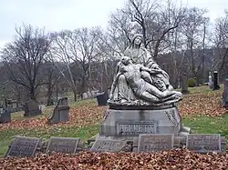 Saint Mary Cemetery is a Roman Catholic burial ground located at 45th and Penn Avenues in the Central Lawrenceville neighborhood of Pittsburgh, Pennsylvania, US. It is adjacent (just south) of the city's slightly older and much larger Allegheny Cemetery. A chain-link fence separates the two cemeteries.