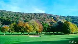 St. Melyd Golf Links railway station was a stop on Dyserth branch line (now a footpath). Passengers would have to access from the Gwaenysgor facing side of the golf course. All that remains here is a post that has long overgrown with foliage. This post was probably used to bear the station name.
