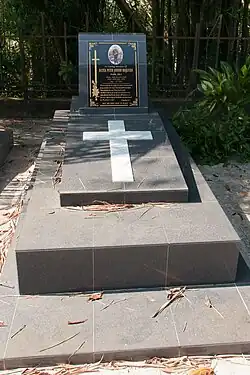 The cemetery consists of two parts. First is a small park-like ground, directly located to the left wing of the church. Only two tombs are located here, which are the grave of Rev. Fr. Anthony Paul Michael, containing the bones of the priest recovered in Tenom and the grave of Datuk Peter Mojuntin, a minister of Sabah, who died in the Double Six Crash tragedy.