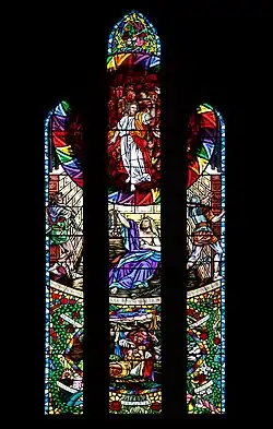 The sanctification of the main nave was made on 30 September 1906 during Michaelmas. The western portal, which is the main entrance to the church, was not completed at that time and was consecrated only in 1925, 32 years after construction began. In May 1941 Rev Reuben Henthorne and Rev Denis W.A. Brown were interned by the Japanese. Services continued at the church until 1943 when it was closed and used as a store. The church was dynamited by the Japanese forces before surrender in 1945 as World War II ended, although the shell of the church remained standing.[6] Reconstruction began soon after the war, and St Michael's is still one of the few historic stone buildings in Sabah. The coloured stained glass windows were donated to commemorate the 60th anniversary of the end of the World War II by Australians.[5]