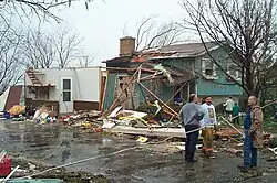 The storm roughly followed U.S. Route 151, with St. Nazianz and Chilton receiving the worst of the damage, caused largely by wind and hail. The hail ranged from golf ball-size to baseball-size. Many houses were destroyed by the storm, while others sustained major damage. Many cars were totaled or needed hail damage repair. The total damage caused by this storm to St. Nazianz and surrounding areas was estimated at $122 million.[8] It was the state's first storm to exceed $100 million in damage.[9] No casualties were caused by the storm. The village has since recovered considerably.