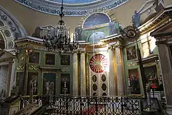The St. Nicholas Church (Finnish: Pyhän Nikolaoksen kirkko; Swedish: S:t Nikolaus kyrka) is the main church of the Kotka Orthodox Church in Kotka, Finland, surrounded by the Isopuisto park The church was built between 1799 and 1801 according to the drawings of architect Jakov Perrin.[2] The church dates back to the time of the active years of the sea fortress of Ruotsinsalmi,[1] when the Russians built the Ruotsinsalmi–Kyminlinna double fortress in the Kymi parish and a fortress town was created on Kotkansaari. The church is the oldest building in present-day Kotka,[2] and it is a notable representative of neoclassicism in Finland.[1]