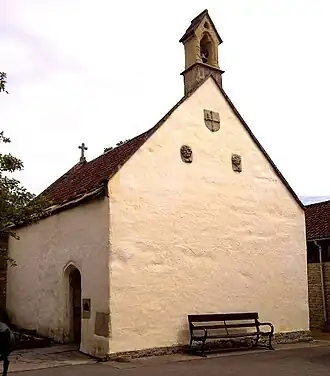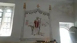 St. Patrick's Chapel in Glastonbury, Somerset, England, is housed within the grounds of Glastonbury Abbey, and was completed in 1517. It is a site of pilgrimage and dedicated to Saint Patrick due to it being close to a possible site of his burial. It sits within the scheduled Ancient Monument area and is a Grade II listed building. The Stained Glass and wall painting are the results of a renovation. Saint Patrick is depicted twice within the chapel, once within the stained glass behind the altar which shows him in his traditional green robe standing above a snake and another on the wall which depicts him with a wolfhound. Weekly services are still held within the Chapel and it 'has been witness to 500 years of Christian worship.'[1]
