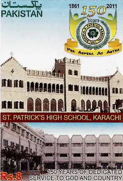 St Patrick's High School is a Catholic primary and secondary school located in Saddar Town, Sindh, Karachi, Pakistan. Founded by the Jesuits in 1861, the school is the second-oldest school in Karachi.[1] Since 1950, it has been run by the diocesan clergy of the Archdiocese of Karachi.[1]