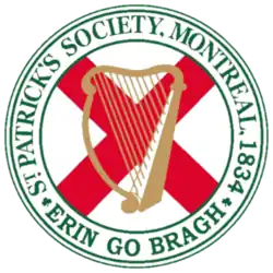 The St. Patrick's Society of Montreal (French: Société Saint-Patrick de Montréal) is the oldest fraternal organization in Canada. In existence since March 17, 1834,[1] it predates the Société Saint-Jean Baptiste by three months. The St. Patrick's Society continues to be a leader in Montreal's Irish community, organizing such annual events as the St. Patrick's Ball, the St. Patrick's Luncheon, and the St. Patrick's Society's annual Christmas concert. The Society's current President is Ken Quinn.