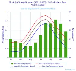 - ^ "WMO climate normals for ST PAUL ISLAND/ARPT AK 1961−1990". National Oceanic and Atmospheric Administration. Archived from the original on December 24, 2023. Retrieved August 30, 2020.