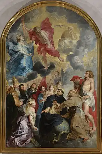 Pieter Verbrugghen I and his son Pieter Verbrugghen II created a Baroque marble main altar that was constructed around Rubens' painting The vision of St. Dominic. The Dominicans ordered in 1670 a new painting on the Martyrdom of St. Paul from Theodoor Boeyermans. This painting and Rubens' painting were installed in the new main altar and could be shown alternately through a rotating mechanism with hinges. Both paintings were robbed by the French occupiers in 1794 and sent to Paris. In 1811 Napoleon donated the paintings to two regional museums: Rubens' St. Dominic to the Musée des Beaux Arts in Lyon, and Boeyermans’ St. Paul to that of Aix-en-Provence. Despite the agreements of the Congress of Vienna of 1815 neither altarpiece was ever returned by France on the pretext that Napoleon had given them to regional museums. The painting The Descent from the Cross completed by Cornelis Cels in 1807 is now placed in the space occupied by the stolen altarpieces.[1][5]