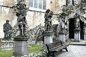 On the outside of the church is a group of statues referred to as the Calvary. It was created on the location of an ancient Dominican cemetery by the brothers van Ketwigh who were Dominican friars. Its design dates from 1697. In 1734 construction of the Calvary was completed but further statues were added up to 1747. It is built as a courtyard and leans on one side against the south aisle of the church and the Chapel of the Holy Sacrament.