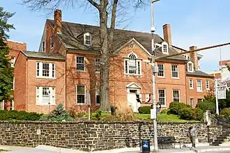 Situated a block to the west, the House was originally built for the Rev. Dr. William West, rector of the church since June 7, 1779, and a friend and former neighbor of George Washington, at Mount Vernon, Virginia, but was completed after his death, March 30, 1791, and he never occupied it.[2] After a lottery was held beginning in April 1788, "for the purpose of building a parsonage for the minister of the Protestant Episcopal congregation in Baltimore Town", 3,000 tickets were sold at $2.00 each, with prizes of $4,000 total, leaving $2,000 for the construction of the house. The managers of the lottery were: John Moale, John Merryman, Andrew T. Ennals, John Eager Howard, John Weatherburn, John Hammond, George Grundy, Dr. Darling, James Calhoun (first mayor of Baltimore Town since 1794, then City after 1797 to 1804), Englehard Yeider, George P. Keeports, William Gibson, William McCreery, Thomas Hollingsworth, and Andrew Buchanan - all prominent citizens in the early years of the burgeoning town.