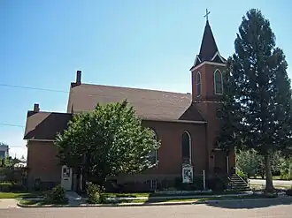 St. Paul's United Church of Christ of Laramie was founded in 1886 as the first German language congregation in Wyoming. The church building was listed on the National Register of Historic Places in 1983. The cornerstone was laid on July 13, 1890, three days after statehood.[2] Clergy from Chicago and the local Christian, Methodist, Episcopal, Presbyterian and Baptist Churches participated in the ceremony, with an address by Dr. John Wesley Hoyt, former Governor of Wyoming Territory and at the time first president of the University of Wyoming.[2] The building was completed and dedicated on January 18, 1891.[3] It is the oldest church structure in Laramie continuously used by the same congregation.[1] With its stained glass windows and heavy wooden furnishings, St. Paul's is reminiscent of rural German churches.[1] Those elaborate windows and its many simplified Gothic elements make the building unique among Lutheran churches in Wyoming.[1]