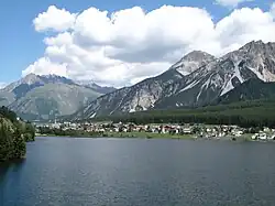 St. Valentin auf der Haide (Italian: San Valentino alla Muta) is a village in South Tyrol in the parish of Graun im Vinschgau in Italy. The village on the Reschen Pass lies at a height of 1,472 metres between the Haidersee and Reschensee on the scree slope of the Mals Heath. St. Valentin auf der Haide has about 800 inhabitants who predominantly earn a living from summer and winter tourism.