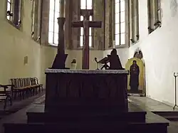 A large Statue of the Crucifixion stands in the presbytery. It was carved in 1930 by Czech artist František Bílek, who also made the altar table. It is made from larch wood.