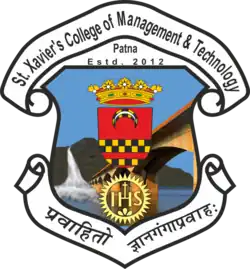 The college emblem contains the motto Pravahito Gyan Ganga Pravah (Sanskrit): "Let the streams of Gyan (knowledge) Ganga keep on flowing." The college is situated beside the river Ganga and like the flowing river would ensure that the streams of Gyan keep on flowing and liberating people, building bridges of understanding. The Sun with the letters IHS (first three letters for Jesus in Greek) is a symbol for the Society of Jesus. The emblem within the emblem, containing crown and crescent moon, is the coat of arms of the noble family of its patron, St. Francis Xavier.