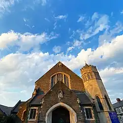 The initial church was an iron church finished in 1891, with parts from other churches (including Cardiff Metropolitan Cathedral and St Peter's Church).[1] This was rebuilt as St Joseph's Church in Gabalfa when the new St Alban's building was finished.[1][2]