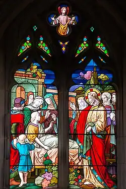 The church is medieval but was substantially rebuilt in 1536[5] and again in 1866 by James Green of Todmorden at a cost of £3,600. The roof and walls were in such a ruinous condition as well as the original arches and piers of the nave, that they could not be preserved, and so the whole church, with the exception of the lower portion of the tower was rebuilt. The clerestory was raised 3 feet (0.91 m) and pierced by six windows on each side, filled with geometric tracery. The east window illustrating the life of the Saviour was made by Clayton and Bell, the gift of H.T. Robinson of Edgley, Leyburn.[6]