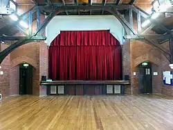 The exposed brick interior of the building contains oversized timber hammer beam trusses and large folding timber doors that line both sides of the central hall. All timberwork remains unpainted.[3] The Parish Hall is used daily by numerous organizations for a large variety of events.