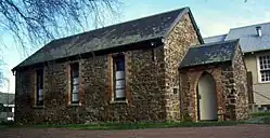 Opened on St Andrew's Day, 30 November 1842, this small stone building, erected to the south of the present site in 1842 as No. 1 St Andrews Street, was used as a church and school. However, the north-western extension of Church Street, from St Andrews Street to the junction with New Street, isolated the southern portion of the "Church Reserve" from the main site soon after construction. This southern portion was not conveyed to the church in 1843 and other development took place on that land.[3] The building seated 100 people, about 20% of the local population of 500, and was one of the first church buildings in the south-eastern mainland of the Diocese of Australia.[2] In 1843, it was recorded that 75 pupils were enrolled at the newly established St Andrew's School, which was officially opened as School No. 44 in 1849 by Church of England authorities.[7]