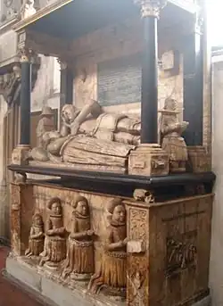 Interior of Saint Andrew's church, Norwich Alabaster monument (circa 1611) to Sir John Suckling - 1478 West tower under construction