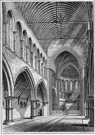 St Andrew's Church was a Church of England church on Barking Road in Plaistow, east London.[1] It began as a small mission built in 1860 on Whitwell Road by St Mary's Church, Plaistow. A permanent church designed by James Brooks opened in 1870 on a site just south of the northern outfall sewer embankment and a separate parish assigned to it the following year. A large central crossing tower with a pyramidal spire was planned but only completed as far as the ridge of the nave roof.
