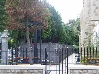 In the small garden of remembrance surrounding the church building is a columbarium, where the ashes of over 1300 deceased are kept.[15] The initiative for a "crypt", to the left of the main entrance came from Maria Leśniak.[16]