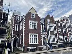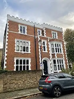 The southernmost stretch of St Ann's Villas continued the original style of Robert Cantwell but on reaching Queensdale Road the architectural style changes.[2][3] Built as semi-detached villas in the Tudor Gothic style, it provides a distinct contrast to the rest of the estate, which uses white stucco terracing.[4] A number of the buildings are now Grade II listed.[5] The music hall performer Albert Chevalier was born in the street in 1861 and is now commemorated by a blue plaque.[6]