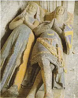 Historical records indicate that in the Taxatio (1291) and Valor Ecclesiasticus (1535) the village was named Llandathan and the parish church named simply Tathana's.[5] St Athan's comprised three sub-manors: Castleton, East Orchard, and West Orchard.[7] The early history of the parish of Eglwys Brewis records that it was situated in the manor of St Athan and was held by the same lordship as that of Castleton.[7] Roman coins have been discovered in the vicinity including a find in 1798 in a field between St Athan and Eglwys Brewis.[8] The Castleton manor existed in St Athan from the Norman period under the lordship of the Nerber family. Norman castles were later constructed in West Orchard and East Orchard as manorial residences. In 1320, a Richard de Nerber was said to have "retained only half a knight's fee at St Athan."[9] However, from around 1240, the Berkerolles family appear to have received entitlements to the manorial estates of West and East Orchard and built a new manor house in West Orchard and later at East Orchard in 1377.[3] The earlier Norman castles appear to have been destroyed by Ifor Bach. The Berkerolles family's influence grew stronger in the 14th century. Sir Roger Berkerolles died in 1351; a tomb is dedicated to him in the parish church, which also contains his parents' remains. The current church is mainly dated to the 14th century and it is thought the Norman church originally here was ordered to be rebuilt by the Berkerolles.[10] Later, the manor fell under the Stradling family.[10]
