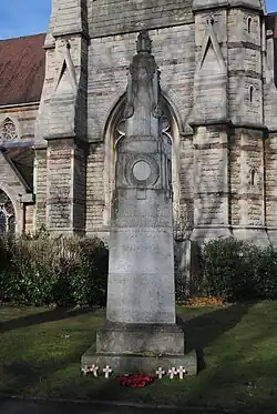 Edgbaston War Memorial, separately listed at Grade II, stands in the churchyard.[2] It was erected in 1921 to commemorate the dead of World War I, and was subsequently modified to include those of World War II.[2]