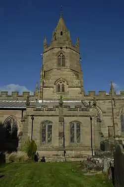 The Collegiate Church of St Bartholomew, Tong (also known as St Bartholomew's Church) is a 15th-century church in the village of Tong, Shropshire, England, notable for its architecture and fittings, including its fan vaulting in a side chapel, rare in Shropshire, and its numerous tombs. It was built on the site of a former parish church and was constructed as a collegiate church and chantry on the initiative of Isabel Lingen, who acquired the advowson from Shrewsbury Abbey and additional endowments through royal support. Patronage remained with the lords of the manor of Tong, who resided at nearby Tong Castle, a short distance to the south-west, and the tombs and memorials mostly represent these families, particularly the Vernons of Haddon Hall, who held the lordship for more than a century. Later patrons, mostly of landed gentry origin, added further memorials, including the Stanley Monument which is inscribed with epitaphs said to be specially written by William Shakespeare.