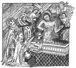 The bargain implicit in the foundation was explicitly admitted as being "to barter an earthly treasure for a heavenly."[40] In traditional theology, a chantry mass was distinguished as exemplifying the "special fruit" made available through Christ's sacrifice and applicable at the will and intention of the priest.[41] This made possible remission of temporal punishment, or time spent in Purgatory. Nevertheless, as at Tong, foundation deeds almost always added that the mass should also be for all the faithful departed.[42]