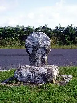 Like Stonehenge and other stone monuments built during this period the original purpose of such stone circles is unknown, although there is strong evidence that they may have been ceremonial or religious sites. Many other lone standing stones from the neolithic period can be seen around the parish, at sites including Pridden, Trelew, Chyangwens and Trevorgans. In addition to menhirs there are 12 stone crosses within the parish,[9] including two fine examples in St Buryan itself, one in the churchyard, and the other in the centre of the village. These take the form of a standing stone, sometimes carved into a Celtic cross but more often left roughly circular with a carved figure on the face. It is thought that many of these are pagan in origin, dating from the Neolithic and later periods, but were adapted by the early Christian church to remove evidence of the previous religion.[10] These crosses are often remote and mark/protect ancient crossing points.[10] Other examples in the parish can be found at Crows-an-Wra, Trevorgans and Vellansaga.