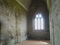 Although no records survive of the chapel's construction, the chapel has been dated in style to the late 14th century, the same time as Abbotsbury's tithe barn was built.[3] The chapel is built on a definite platform which could have been originally for a pagan temple.[4] St Catherine's Chapel was built as a place of pilgrimage and retreat by the monks of the nearby Benedictine monastery Abbotsbury Abbey, which the chapel overlooks high up on the hilltop. Its position on the top of a hill about 80 m (260 ft) high, overlooking the coast from Portland Bill to Bridport, meant that it was a prominent feature for seafarers. Only a handful of chapels of the same kind are located outside the precincts of the monasteries who constructed them. The isolated setting of the chapel granted the monks to withdraw from the monastery during Lent for private prayer and meditation.[5]