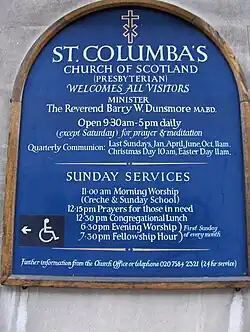 - ^ a b Historic England. "Church Of St Columba (Presbyterian) (1227408)". National Heritage List for England. Retrieved 9 July 2016.