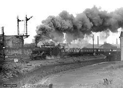 With the run down in Queensbury services patronage of the station fell and it closed in 1952.[6] The triangle of lines at St Dunstans were still in operation up until August 1972, when the City Road Goods Branch was closed.[7] The branch veered off the old line to Thornton at Horton Park railway station and usually consisted of coal being forwarded from Laisterdyke goods yard.[5]