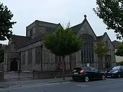 The present church was built in 1938; the architect was Nugent Cachemaille-Day,[1] who was a leading British exponent of Expressionist architecture.[4] It has a nave of four bays, with two wide aisles, transepts and a short chancel. A low square tower is over the crossing. The style is described as "simplified perpendicular Gothic".[1] The exterior is clad in knapped flint, reflecting the vernacular Essex tradition.[5] A separate ecclesiastical parish was formed for St Edmund's in 1939.[3] It became a Grade II listed building in 1987.[1]