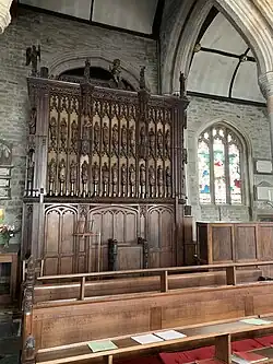 The new reredos with riddels (curtains) to the design of A.S. Parker was carved by J.R. Hunt and dedicated on 19 May 1929.[6]
