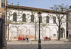 The current church building in the Campo San Vio was formerly the warehouse for the Venezia-Murano Glass and Mosaic Company. It was built to a design by engineer Luigi Marangoni, with sculptures by Napoleone Martinuzzi and dedicated in 1892.[2]