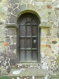 A Saxon doorway, reset in the new north aisle in 1885, is the oldest surviving part of the church. Less elaborate than the Saxon entrance at nearby St Mary Magdalene's Church, Bolney, it is round-arched with narrow voussoirs and has jambs made of five large, roughly cut stones on each side (inside) and six more cleanly hewn and regular stones (outside). The entrance is 5 feet 10 inches (1.78 m) high and 3 feet 1 inch (0.94 m) wide. The voussoirs are each about 5 inches (13 cm) wide, and there are nine inside and seven outside.[16]
