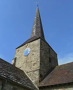 St Giles' Church is an Anglican church in the village of Horsted Keynes in Mid Sussex, one of seven local government districts in the English county of West Sussex. Serving an extensive rural parish in the Sussex Weald, it stands at the north end of its village on the site of an ancient pagan place of worship. The present building succeeds the original wattle and daub church, its wooden successor and a Saxon stone building—although the Norman architects who erected the cruciform structure in the 12th century preserved parts of the Saxon fabric.