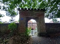 By 1526 the college, although still functioning, was in a state of disrepair and the canons were constantly arguing amongst themselves; the warden, who was over 80 years old, was frequently absent. In 1538, the college was dissolved and surrendered to the crown by the last warden, Richard Eden. In 1544, the king granted the college estate to Sir Thomas Paston for the sum of £1,280, although he seems never to have lived there. After passing through numerous hands, it was eventually purchased by the Borough of Sudbury for use as a workhouse and the remaining medieval fabric was demolished in 1836 to make way for a more suitable building.[14] Only the heavily restored gateway survives, standing on the west side of the churchyard; it is a Grade II listed building.[15]