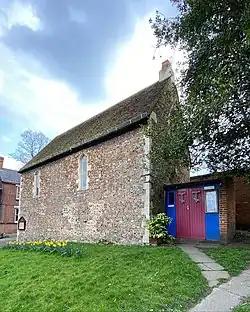 In the 16th century, after the Protestant Reformation, St Helen's Chapel ceased to be used for worship and instead was used for secular use as a school, library, and workshop.[3] In the 18th century, the chapel began to be used as a Quaker meeting house and later a Church Hall. In 1886, the Round family, who also owned Colchester Castle, purchased the chapel, and hired famous architect William Butterfield to restore it.[4] Very little of the original stonework exists, excluding a few decorative Roman bricks.