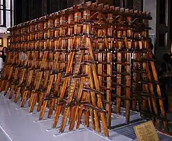 A model of the wooden framework used to erect the columns of St. Isaac's Cathedral is on display inside.