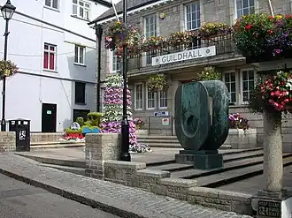The guildhall continued to serve as the headquarters of the borough council for much of the 20th century,[7] but ceased to be the local seat of government when the enlarged Penwith District Council was formed in 1974.[8] A visitor information centre was subsequently established in the guildhall,[9] which also became the meeting place of St Ives Town Council.[10]