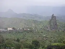 The tallest summit is Pico de Antónia, elevation 1,392 m (4,567 ft),[1]: 25 barely west of Picos, in the centre of the island. The second is Serra Malagueta between Assomada and Tarrafal in the north. Other mountain ranges include Órgãos in the municipality of São Lourenço dos Órgãos and Monte das Vacas near Praia.