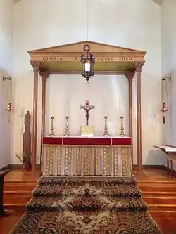 The modern rite of the Mass is performed at least three Sundays each month and features the Gloria, Sanctus and Benedictus from the 1969 "Parish congregational mass in honour of the unsung saints" by Australian composer Albert Edwin Lynch.