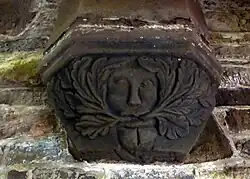 Behind the screen, carved in the chancel arch, can be seen three "green men with verdure sprouting from their mouths."[9] The sculptures are believed to have inspired Julia, Lady Raglan to write about the "Green Man" motif in her seminal 1939 article "The Green Man in Church Architecture" in The Folklore Journal.[10][3]