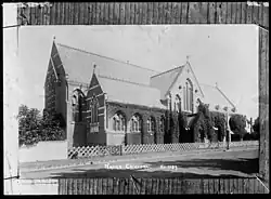 The present-day building replaced an earlier cathedral that was destroyed by the 1931 Hawke's Bay earthquake. Begun in 1886, consecrated in December 1888, and largely complete by 1890, the original cathedral of St John was a brick construction designed by Christchurch architect Benjamin Mountfort.[2] Two lives were lost in the cathedral as a result of the 1931 earthquake. Edith Barry was trapped beneath fallen beams, and was euthanized as flames from the post-earthquake conflagration approached the building. Kate Williams died the following day of injuries sustained in the quake.[3]